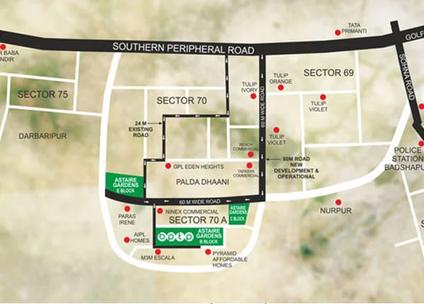 Trehan Floors BPTP Astaire Gardens Sector 70A Gurgaon have a very strategic location within one of the rapidly developing belts of New Gurugram. The project is located near the Southern Peripheral Road and has easy access to the Golf Course Extension Road so as to have smooth connections with Cyber City, MG Road, Sohna Road and the major corporate areas of Gurugram. It is also advantageous in its location since it is close to NH-48 and soon coming SPR metro line connecting it to far off locations like Delhi and other business centers. Some of the well-known institutions of education around the neighbourhood include St. Xavier’s High School, GD Goenka and DPS International, and some of the best hospitals such as Medanta, Artemis and Park hospital are easily accessible.